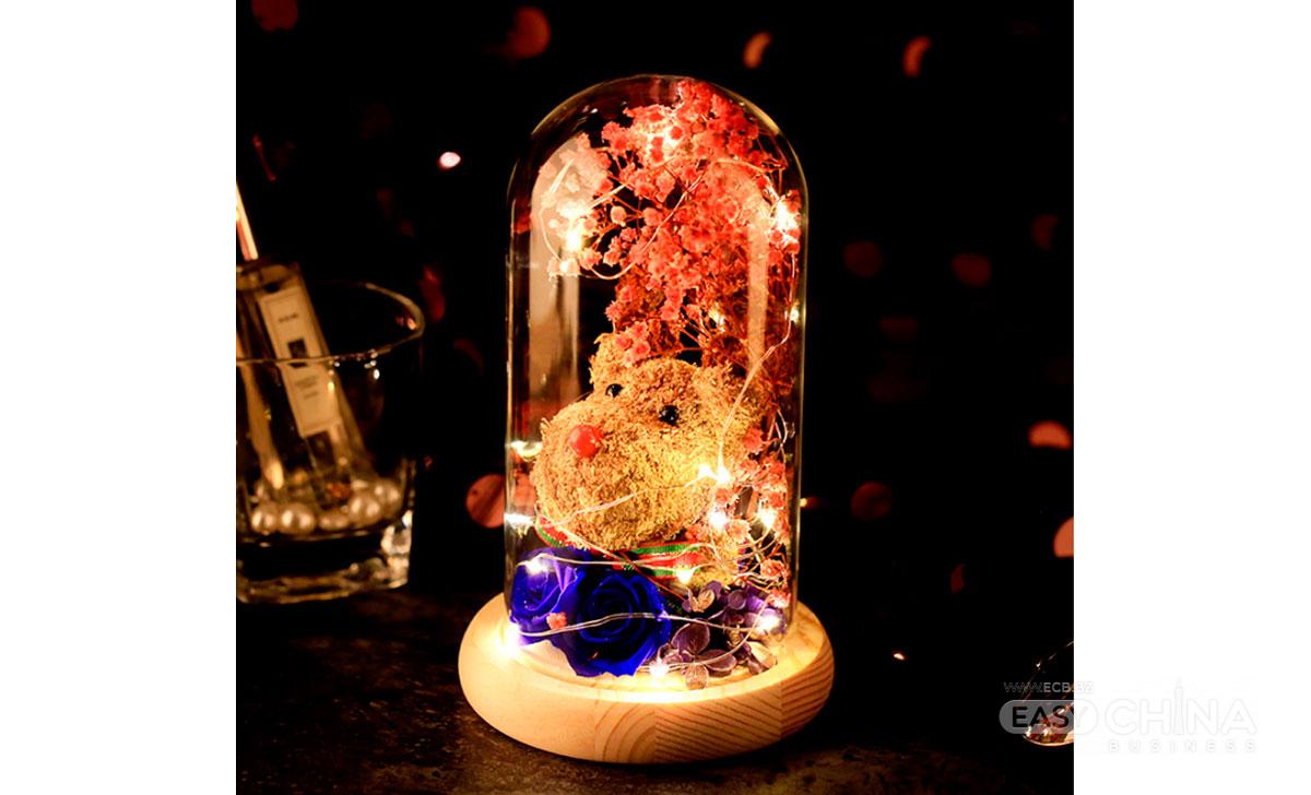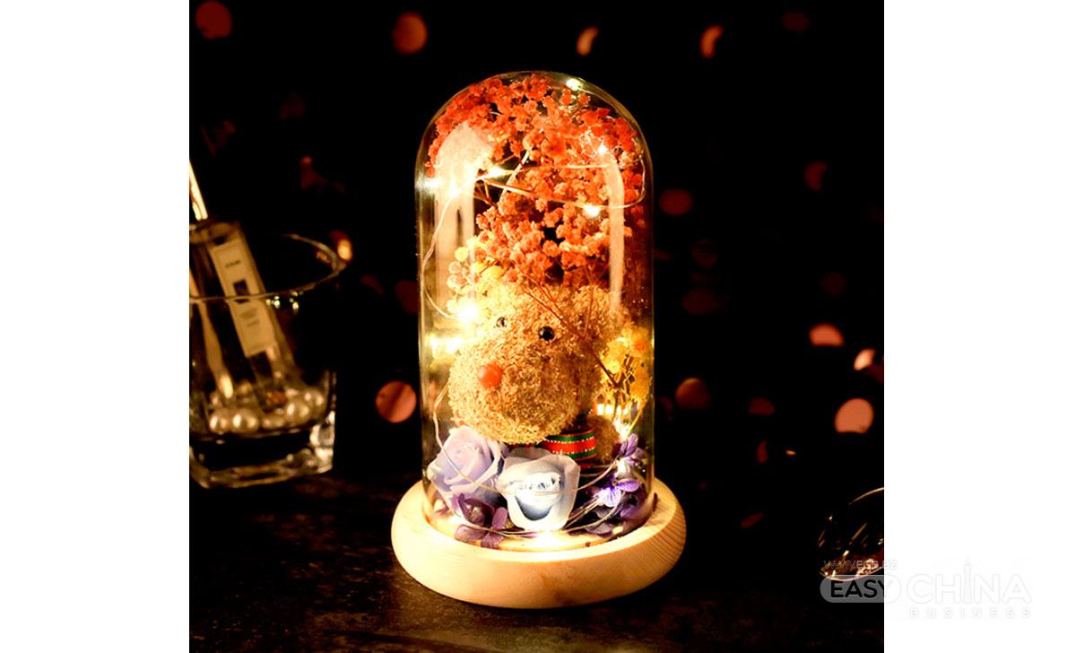 новогодний олень в колбе с дed подсветкой и декором из роз