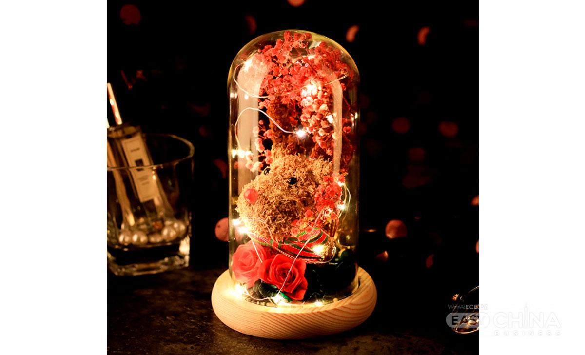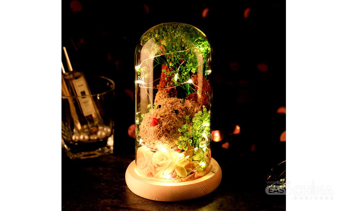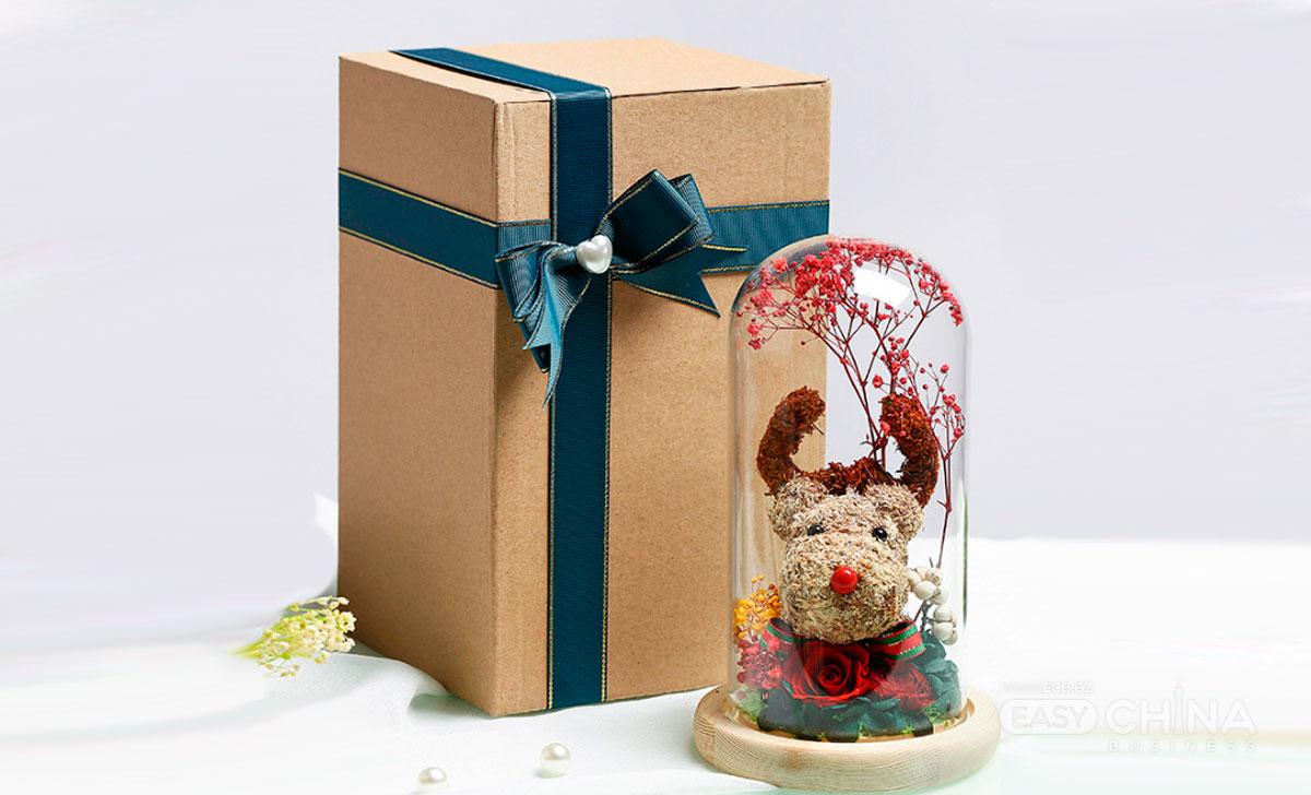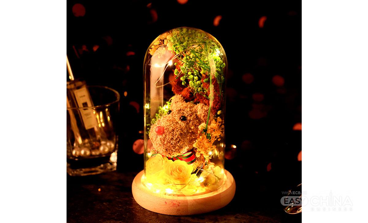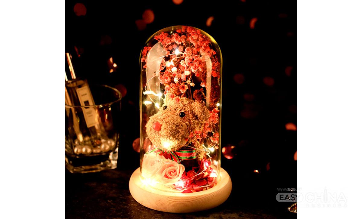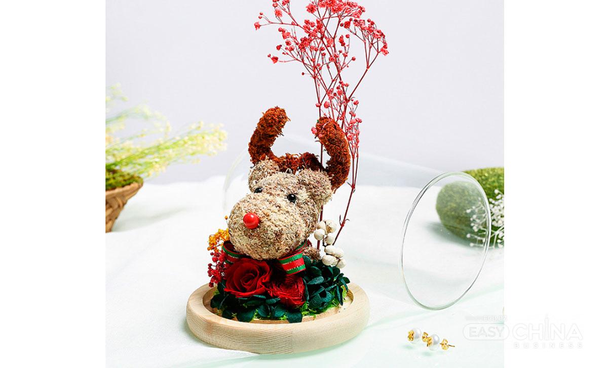 новогодний олень в колбе с дed подсветкой и декором из роз