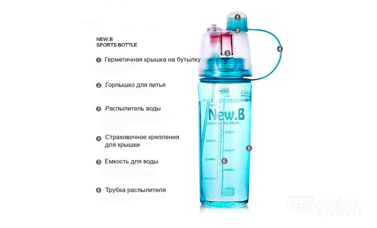 Спрей бутылка для спорта New.B выгодно выделяется функционалом, может обеспечить не только фонтаном живительной влаги, но и профитом.